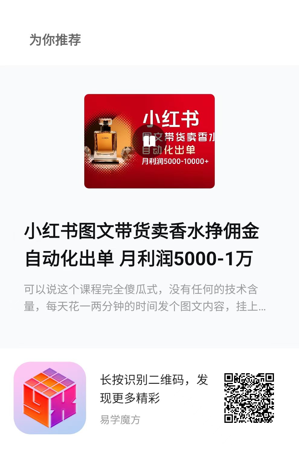 学习更多优质副业课程,请到手机应用商店下载易学魔方app,注册时填写激活码:5995。作者微信:eps5995,添加好友可以领取3套亲测靠谱的项目课程!