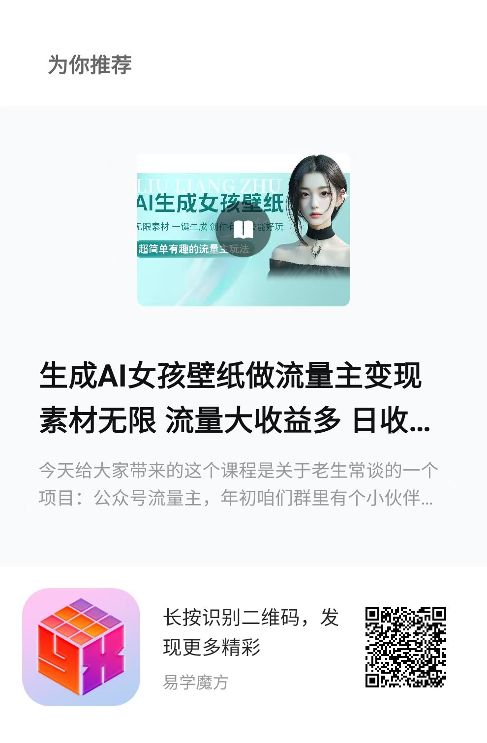 学习更多优质副业课程,请到手机应用商店下载易学魔方app,注册时填写激活码:5995。作者微信:eps5995,添加好友可以领取3套亲测靠谱的项目课程!