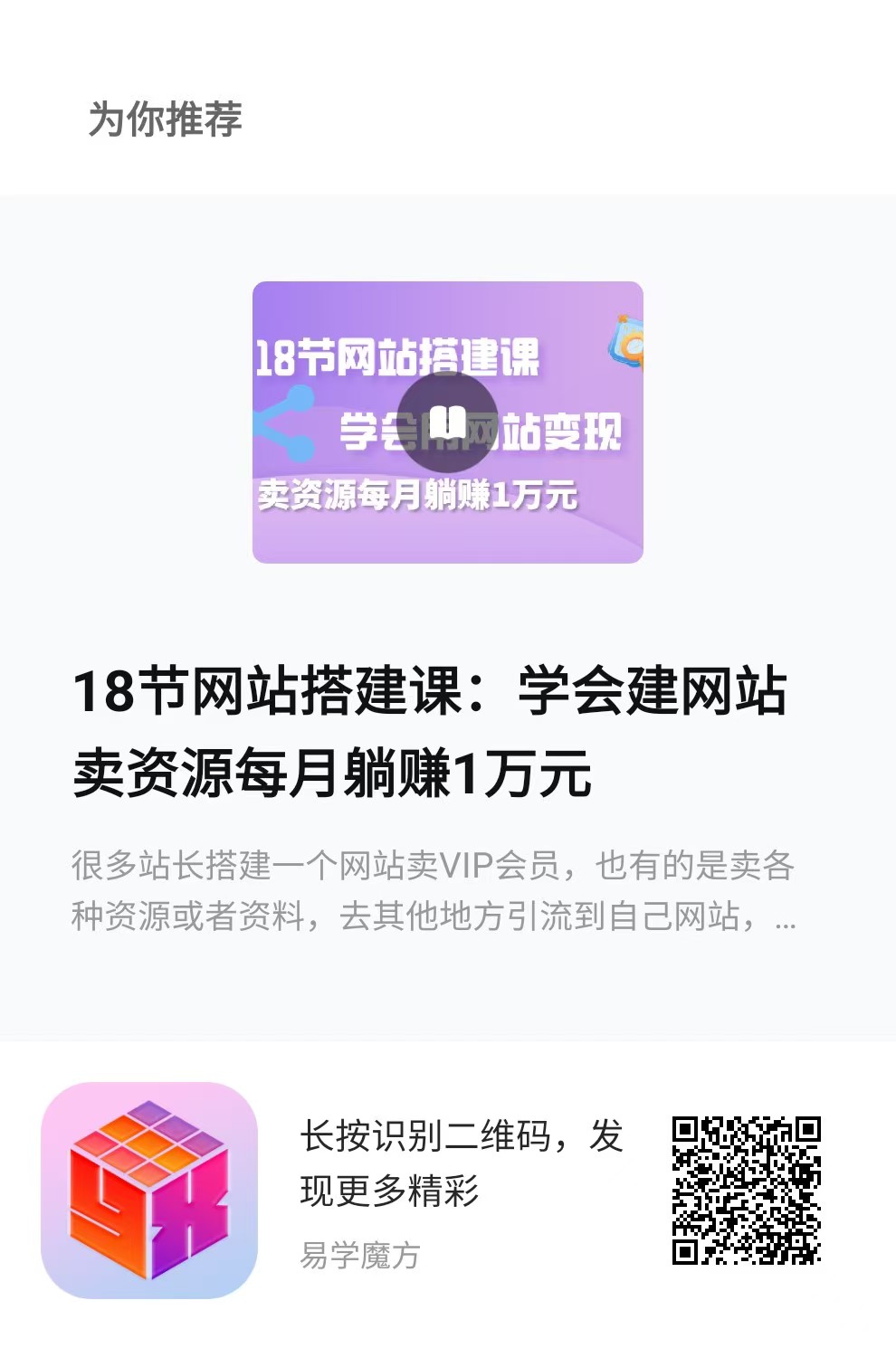 有个小伙伴自己花了200多块钱搭建了个网站,也没开支付接口,直接就是资源分享,这样就更简单了。什么意思?比如这样:
