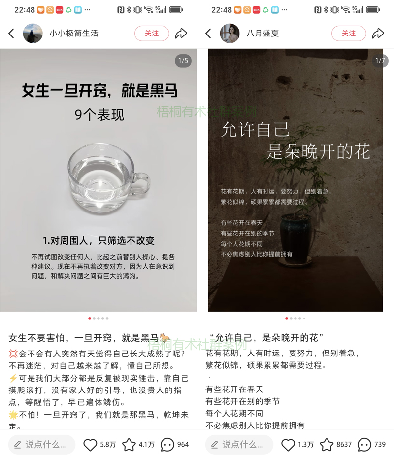 那好,标题我们知道怎么去写了,那么内容去哪里找呢?大家想一下哪里女生最多,你见到受女生欢迎的鸡汤最多?是的,答案就是小红书,这个平台女生占七成以上,有太多的博主在上面发鸡汤了,我们可以把她们的鸡汤文案提出出来,然后创作成文章就可以了。比如: