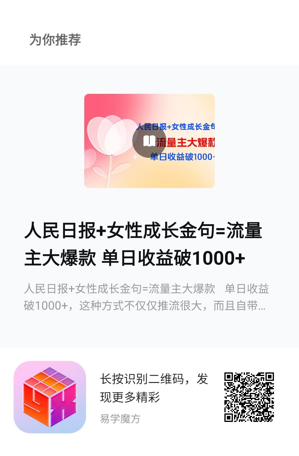 人民日报+女性成长金句=流量主大爆款 单日收益破1000+
