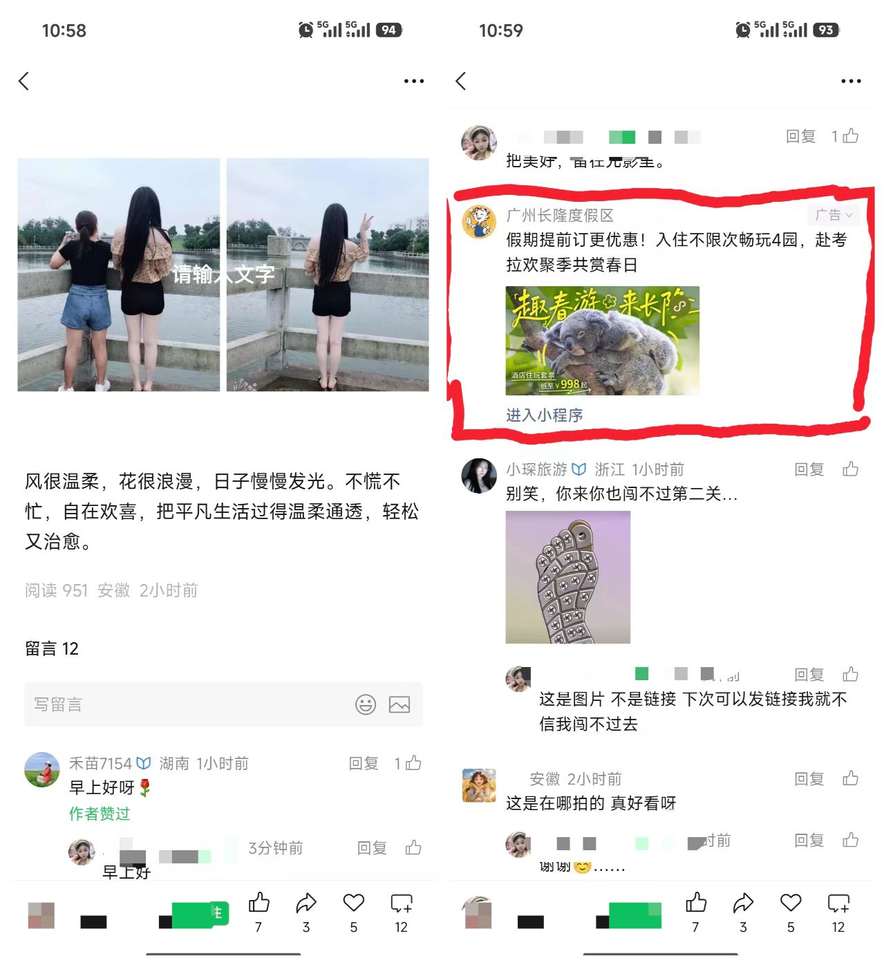 上图红框里的就是评论区广告,账号随机选择,与本人没有任何关系。