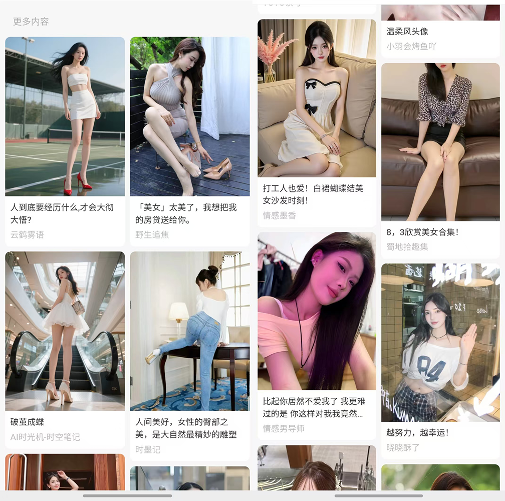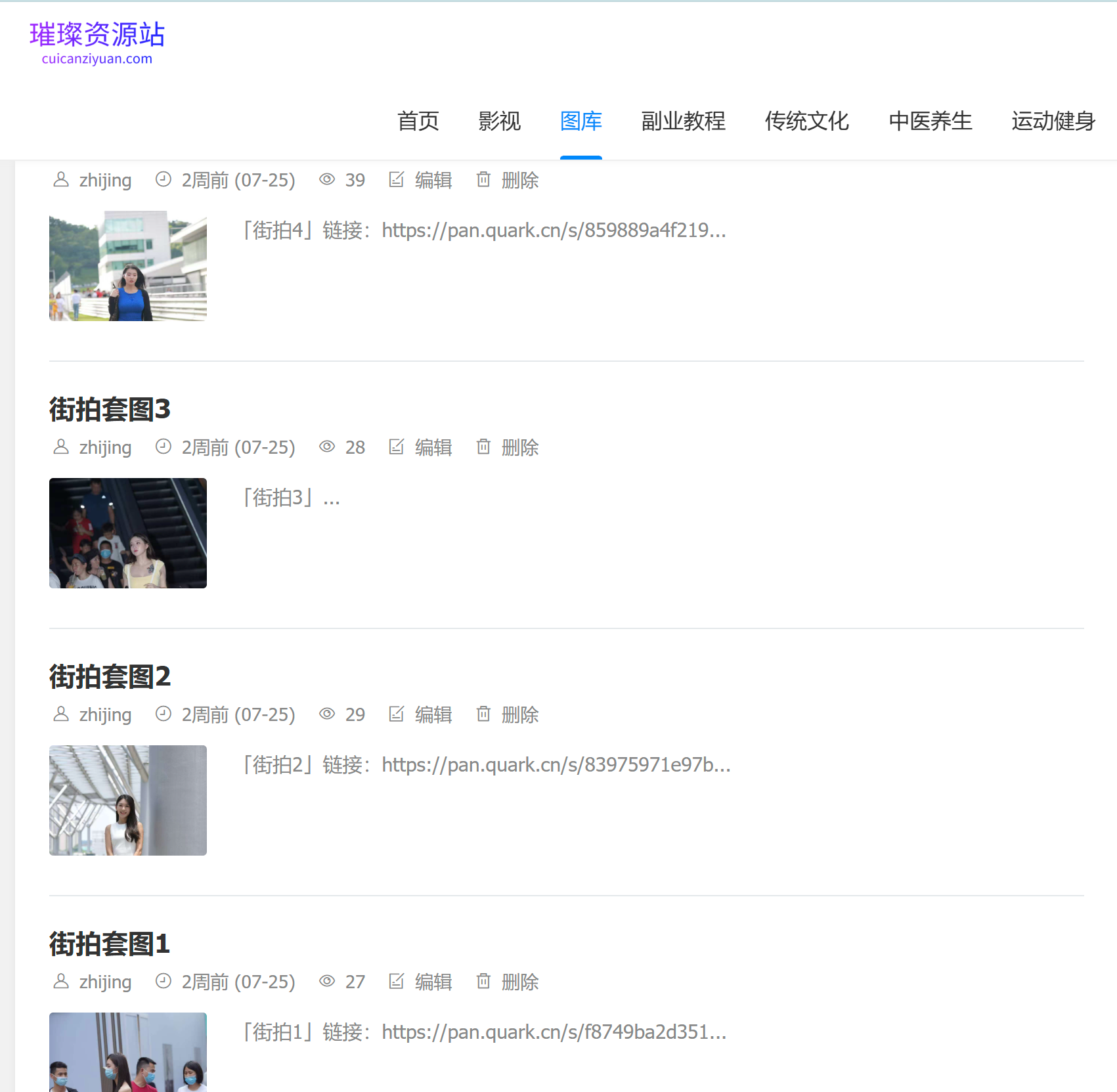 然后就得用钩子了,也就是套图。没套图咋办?去某些图片网站开个会员就是了,只不过通常价格高的狠,那就去淘宝买,5 块到 100 多不等,拼夕夕更便宜,几块十几块能搂一堆,只不过这些平台需要你会找。实在不想花钱,去璀璨资源站(cuicanziyuan.com),我花 200 块买的套图很多都放那儿了,当素材够够的,自己偷偷欣赏也不是不行,就是别太上头。
