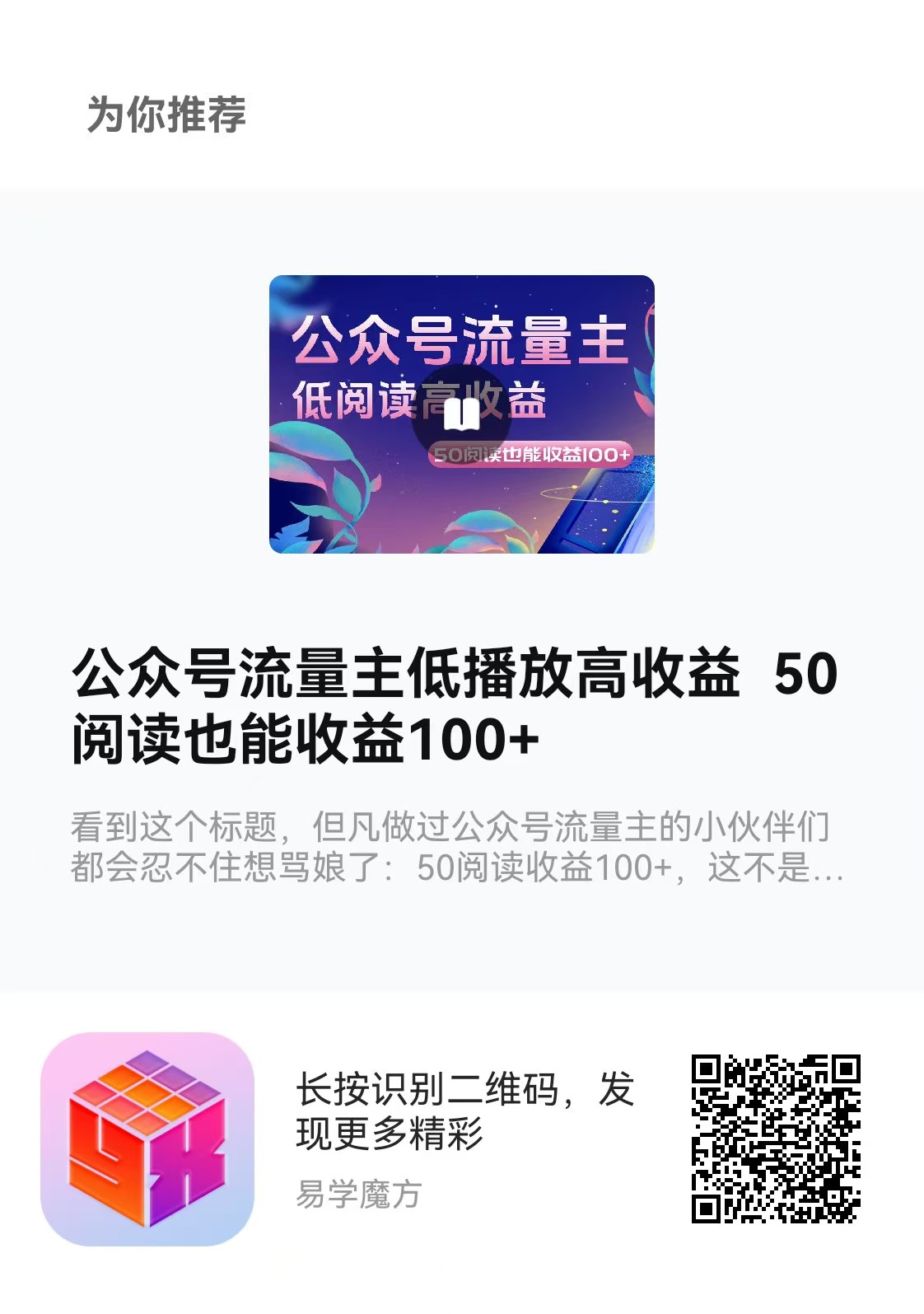 更多优质副业课程,请在手机应用商店下载“易学魔方”APP,注册码:5995