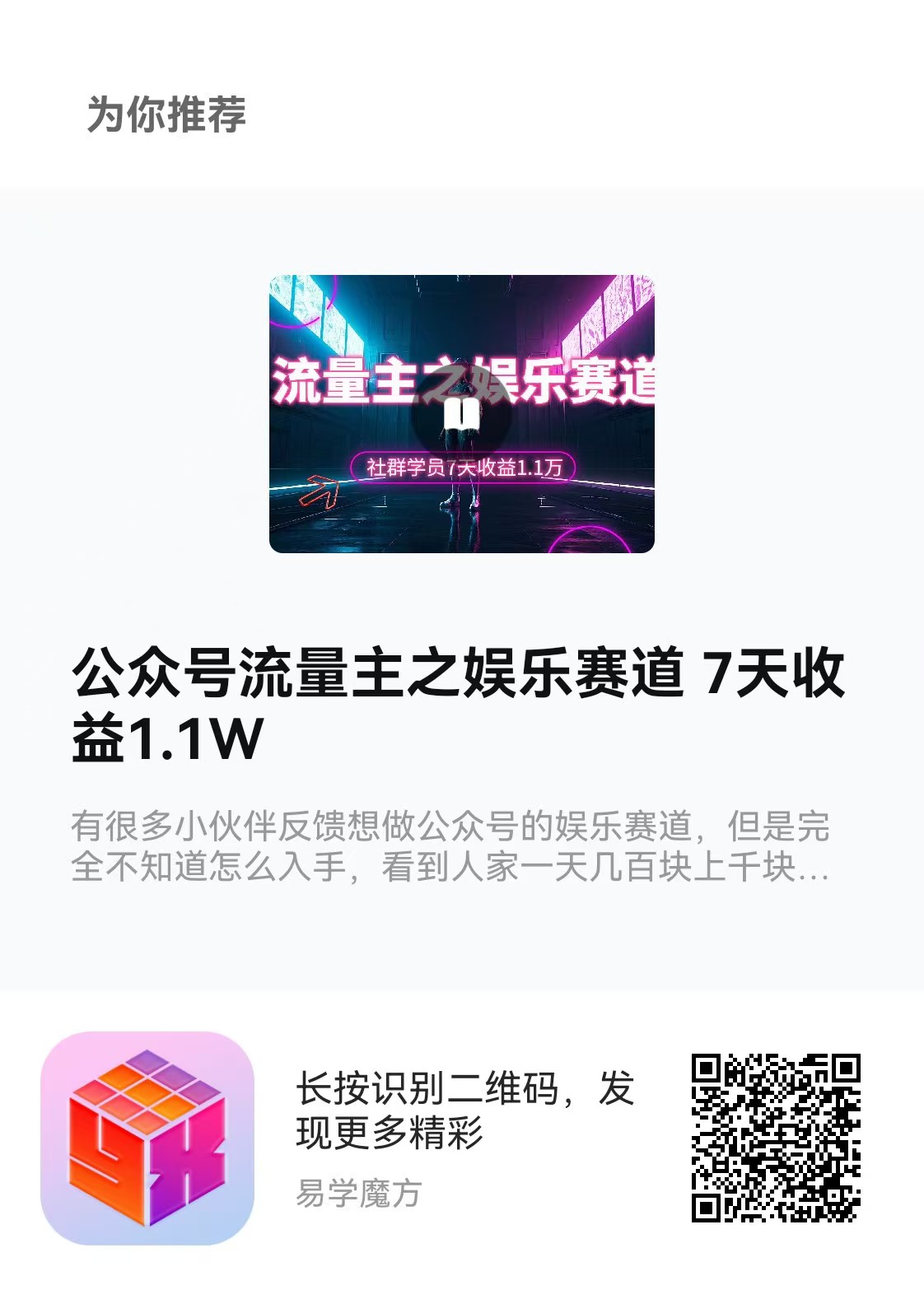 行了,今天就唠到这儿,别光听着激动,看完赶紧动手,下一个爆文作者可能就是你!社群小伙伴可以到易学魔方观看视频教程。非梧桐有术社群小伙伴如果需要学习视频课程,您可以添加微信:eps5995,支付38元获得网盘版教程,您也可以扫描下方图片在易学魔方App内支付后在线学习。