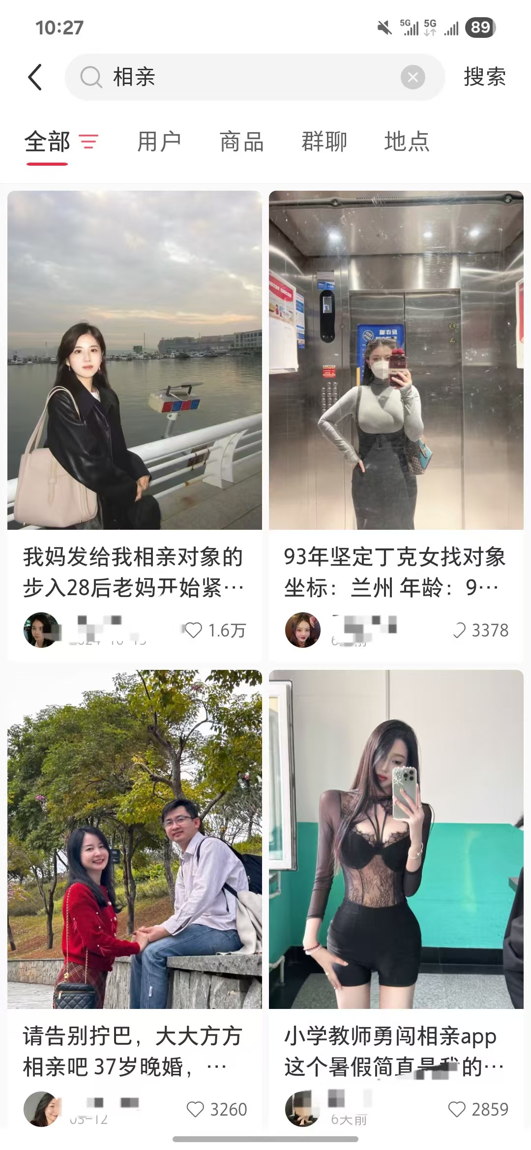 比如我搜 “相亲” 俩字,出来的画面大概是这样:
