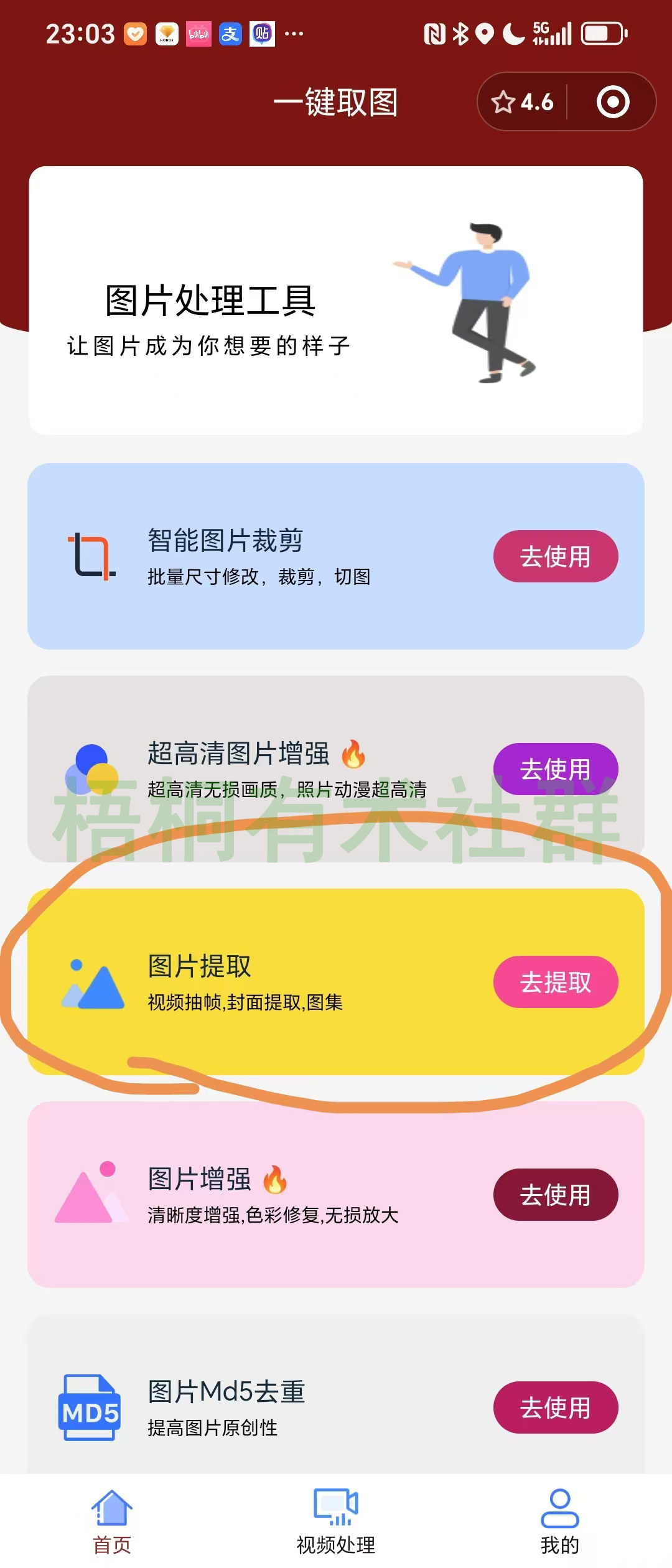 复制完链接,打开 “一键取图” 小程序,选第三个 “图片提取”,就像这样 :