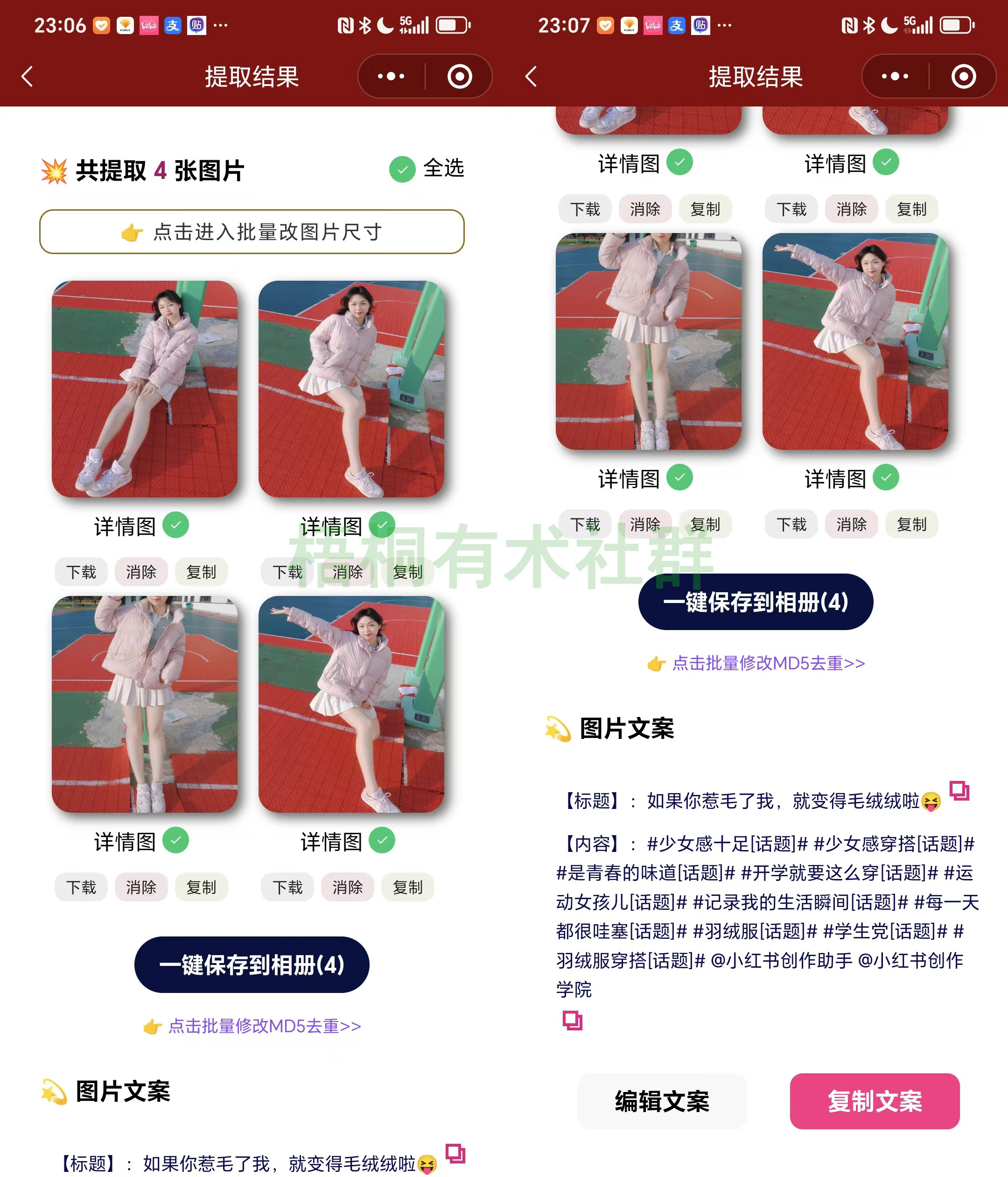 然后把复制好的链接粘进去,点提取,搞定!图片带字全给你扒下来,左边图右边字,就像这样 :