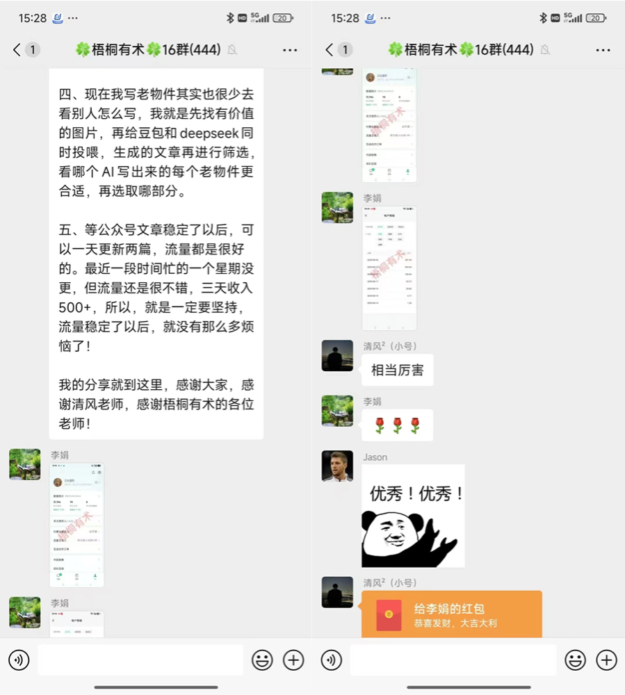 其实社群分享的每个赛道都一样,只要你能沉下心干满 3 个月,严格照着社群给的法子注册、起号、发内容,别在各个赛道之间瞎蹦跶,基本都能做出点样子。