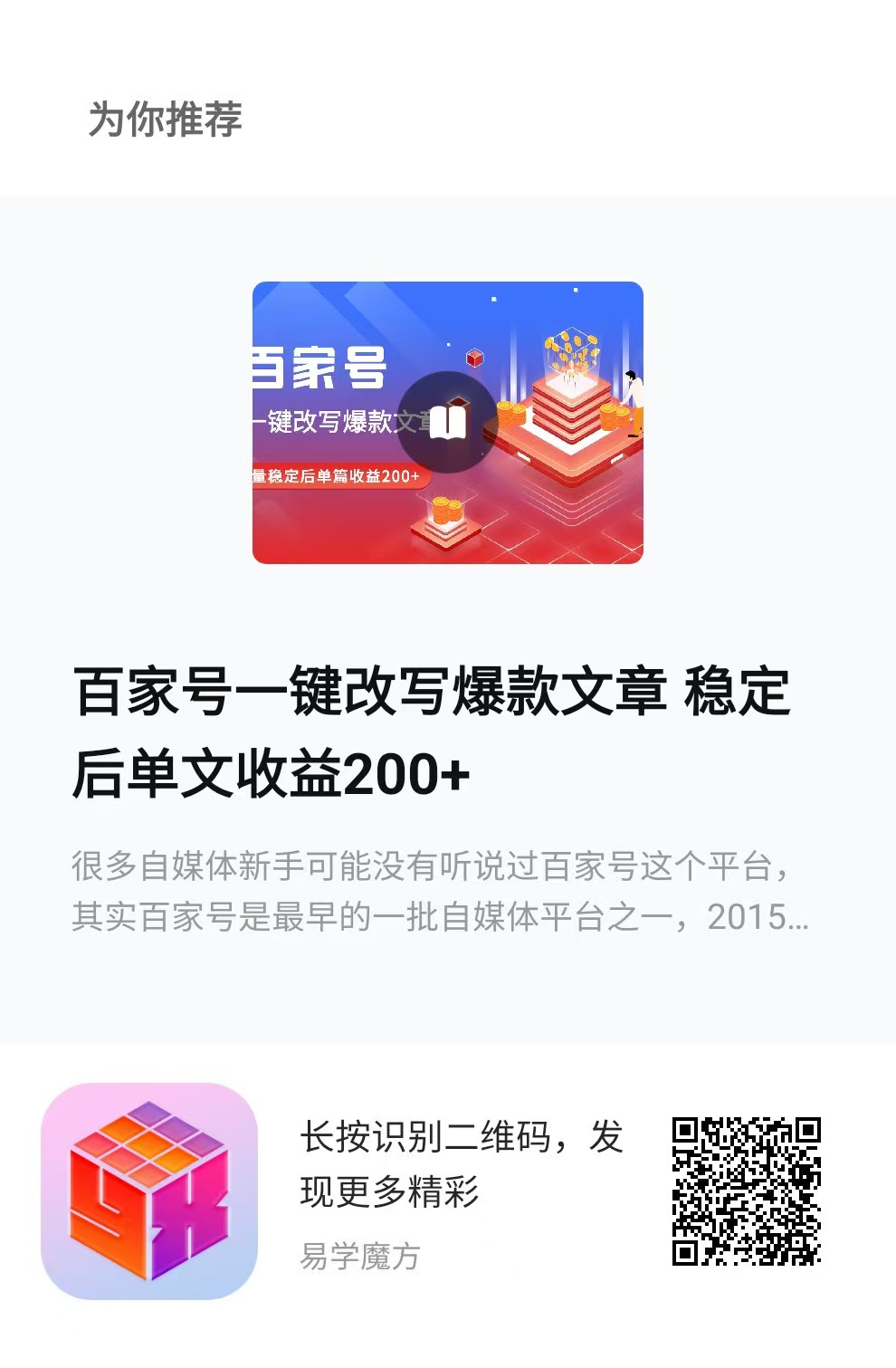 文字版攻略就先讲到这,咱们还录了 8 节视频课,从找爆文到用 AI 改文章、改标题,每一步都详细演示,保证你们能看懂。如果你需要视频教程,请添加微信:eps5995支付38元获得网盘版教程,或者扫描下方二维码,在易学魔方App内支付后,在线学习。