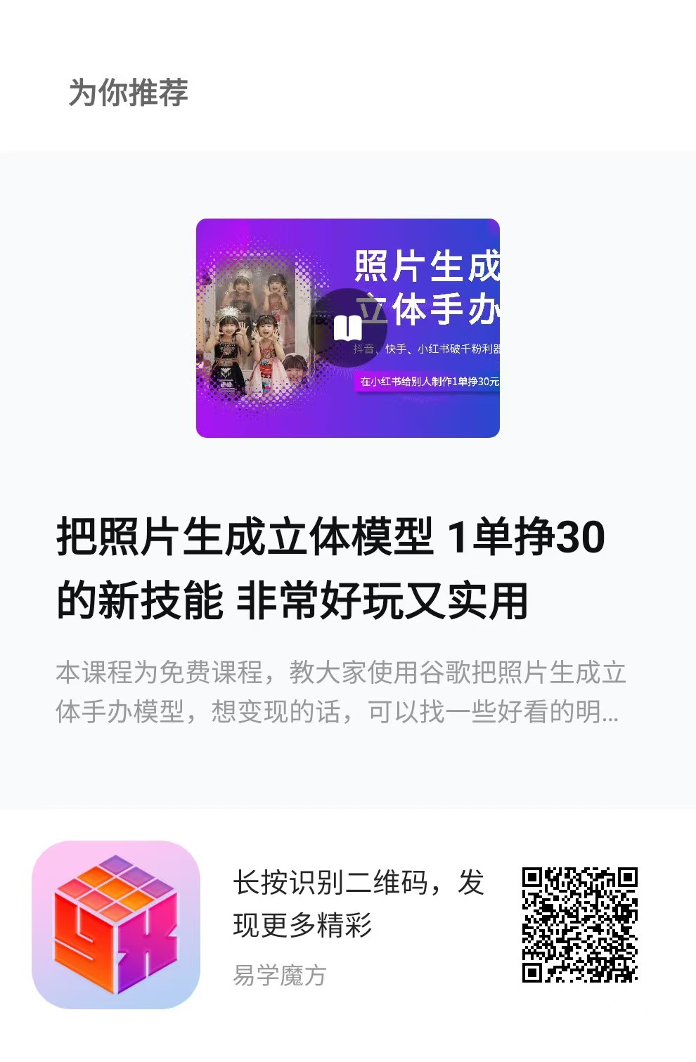学习更多优质副业课程,请到手机应用商店下载易学魔方app,注册时填写激活码:5995。作者微信:eps5995,添加好友可以领取3套亲测靠谱的项目课程!