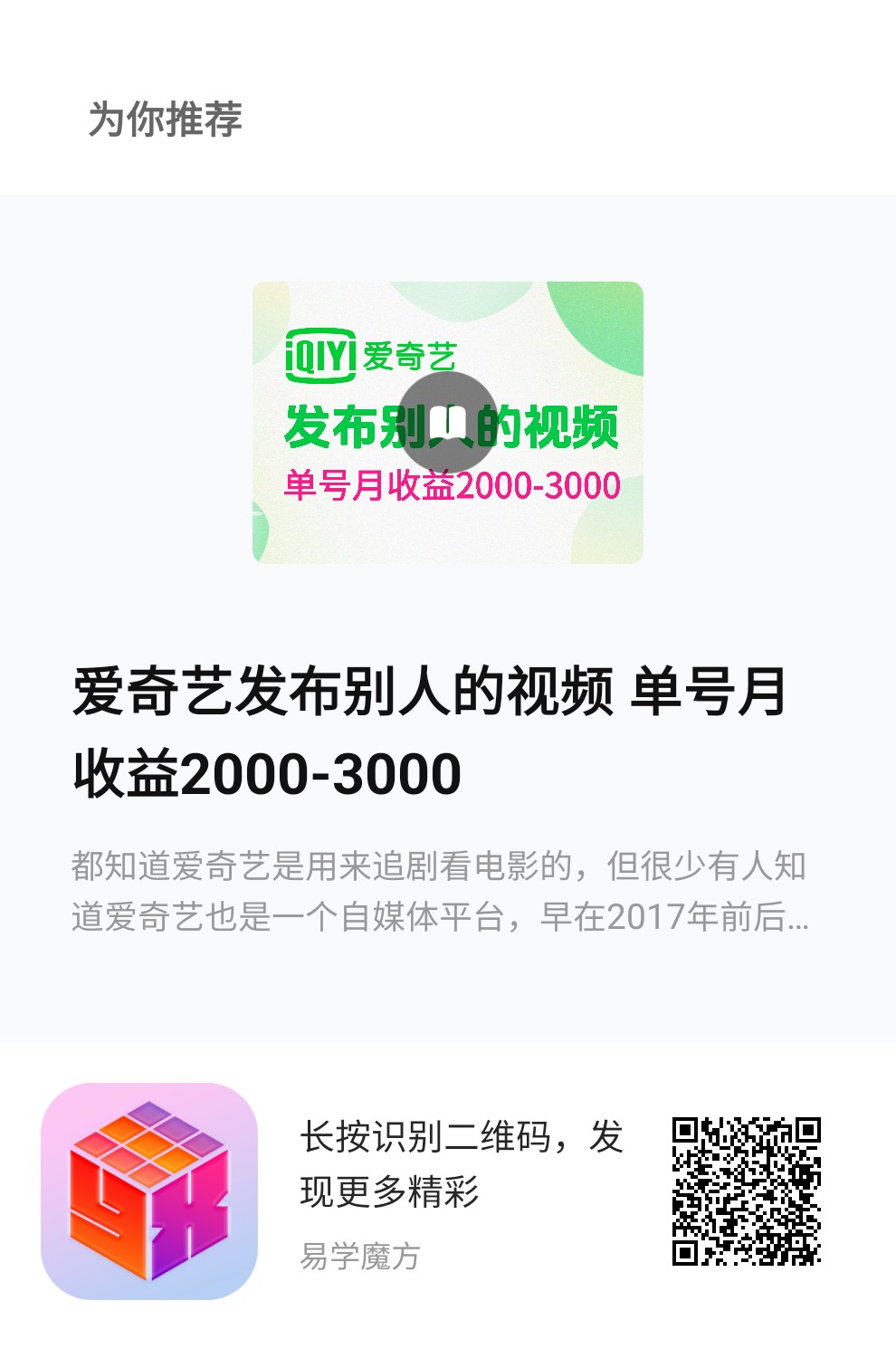 各位小伙伴们大家好!今天咱分享的课程,估计好多人听都没听过,说出来肯定又刷新你认知了,爱奇艺,居然不只是可以用来追剧、看电影的!它还是个能挣钱的自媒体平台!