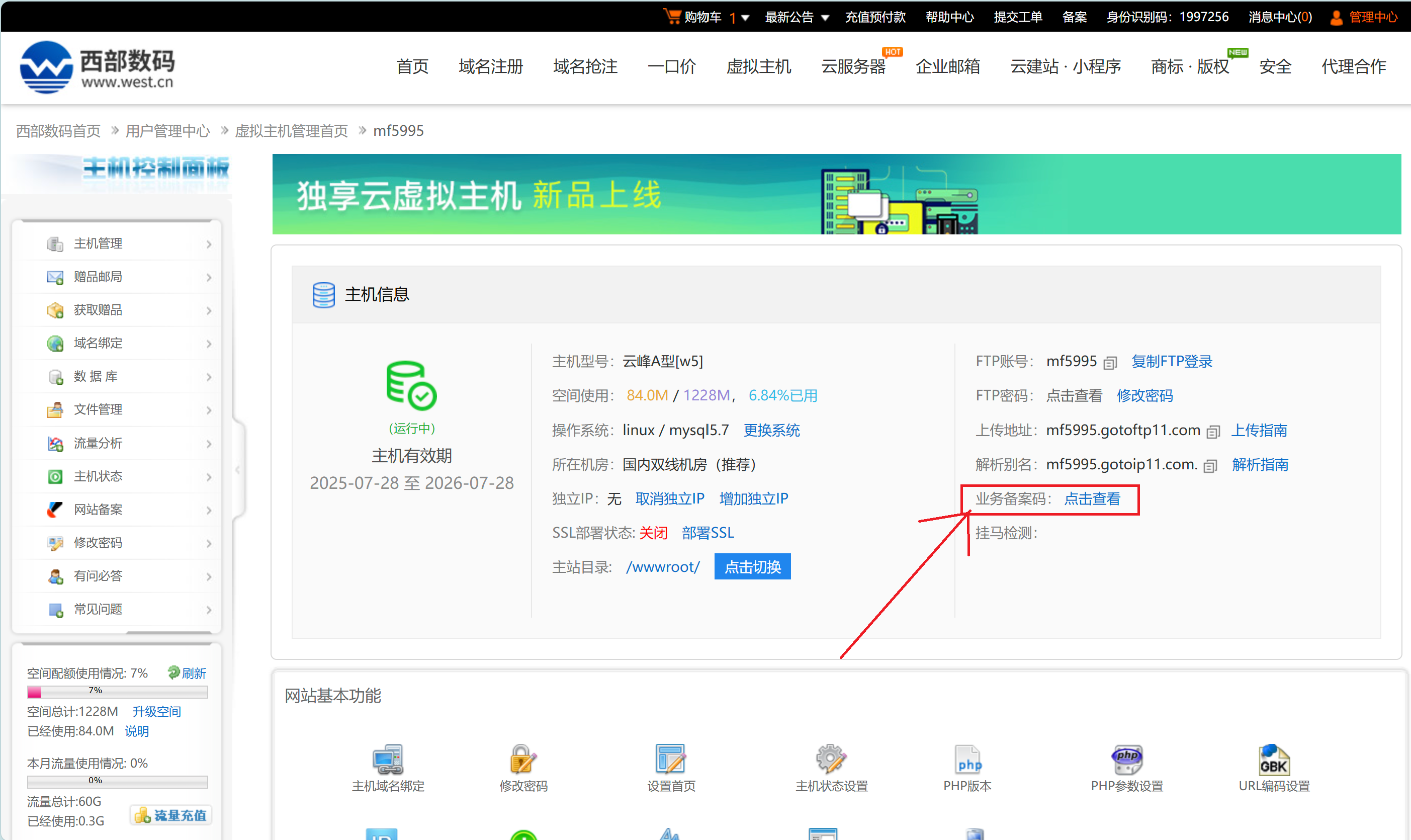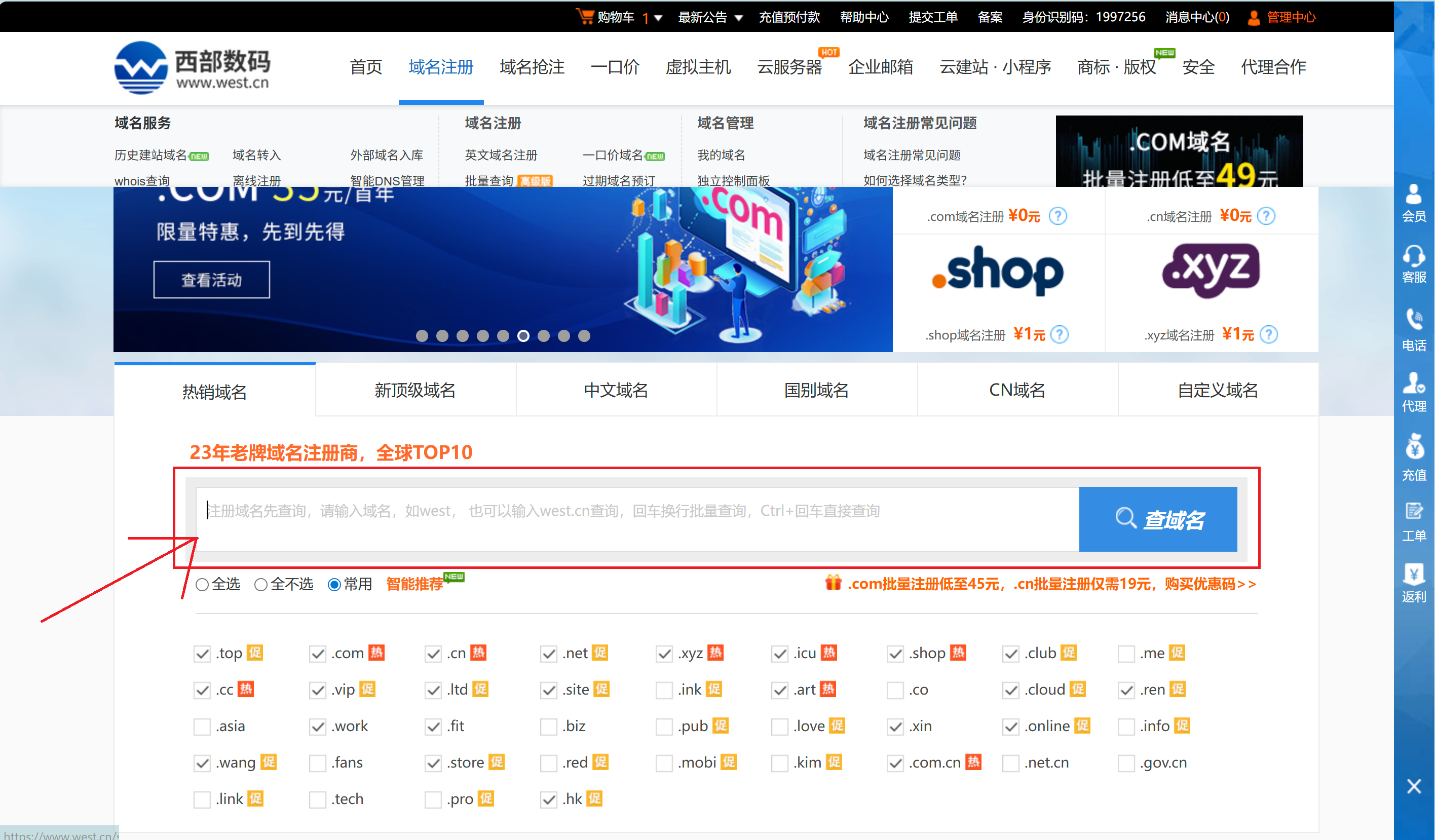 注册、登录成功以后,我们需要购买域名和虚拟主机,西部数码经常会有购买主机送域名活动,我没用过,所以这一点大家可以咨询客服。