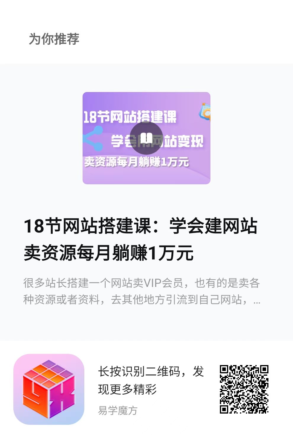 好了,各位小伙伴们,最基本的搭建过程就分享到着,如果遇到问题可以添加文章底部的微信相互交流。如果文字你看的不太懂,你也可以扫描下方的二维码,学些18节网站搭建课程,里面更加详细。个人网站是我们最后一块自留地,你可以明目张胆的做各种排名优化、打广告、引流私域,但请记住这里也不是为所欲为的地方,该遵守的规则还是要遵守,只是不用我们再去看平台的脸色。