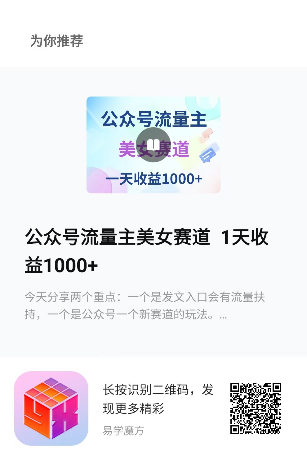 随心说项目:公众号流量主之美女图片赛道 新入口 日1000+