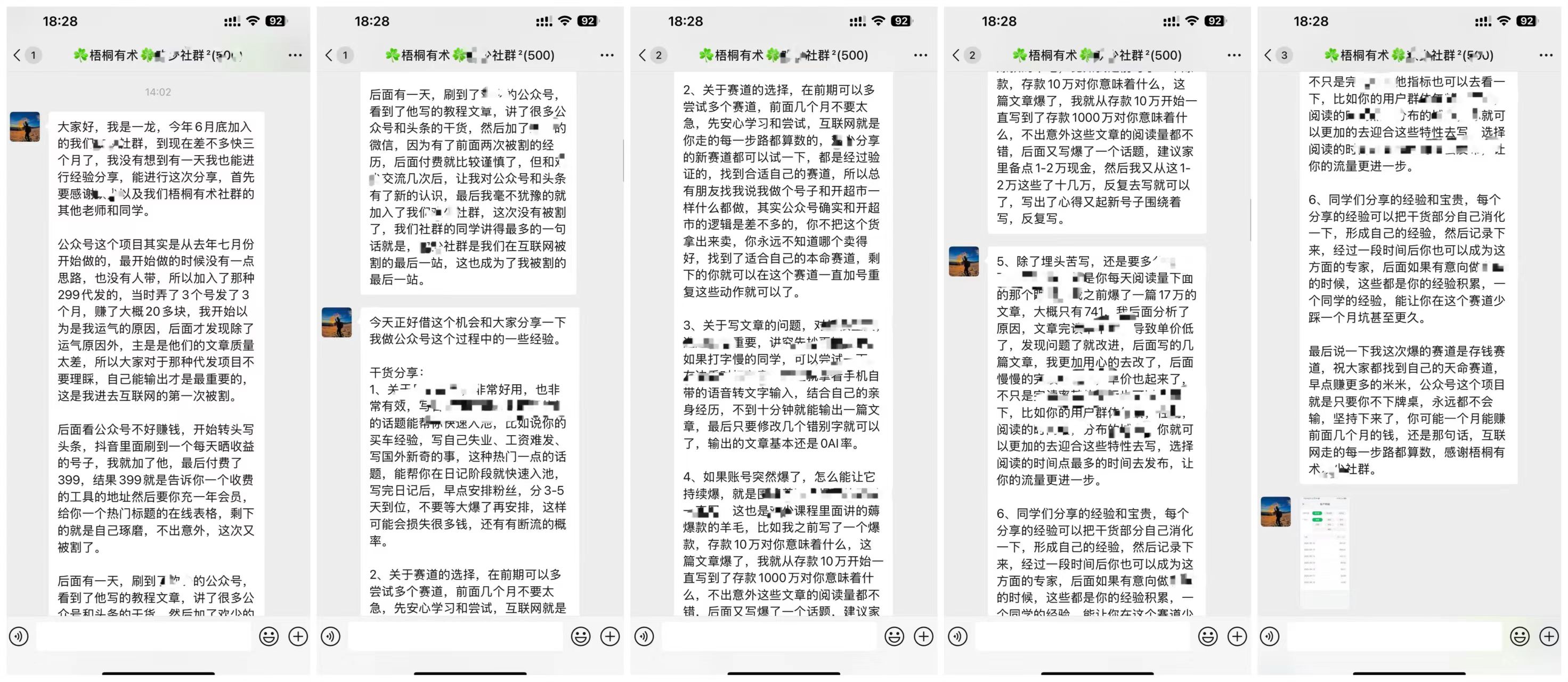 最近社群有小伙伴分享经验,因为做社群的项目做出成绩了,公众号连续好几天都是200+300+的,了解我们社群的小伙伴都知道,我们对这些能连续稳定获取收益,并且能够总结经验做法并分享出来的小伙伴们,是有实实在在的物质奖励,公司总共拿出来10万元作为奖励基金。很多小伙伴在加入梧桐有术之前,给别人或者团队付费学习过,毛都没赚到,兜兜转转一大圈,找到了梧桐有术,想着最后一试,实在不行就放弃互联网创业的想法了。可就是最后这一试,就让他做成了,别的地方收他3000学费,而我们社群还是坚持着699这个价格,所以价钱跟价值永远不能画等号。