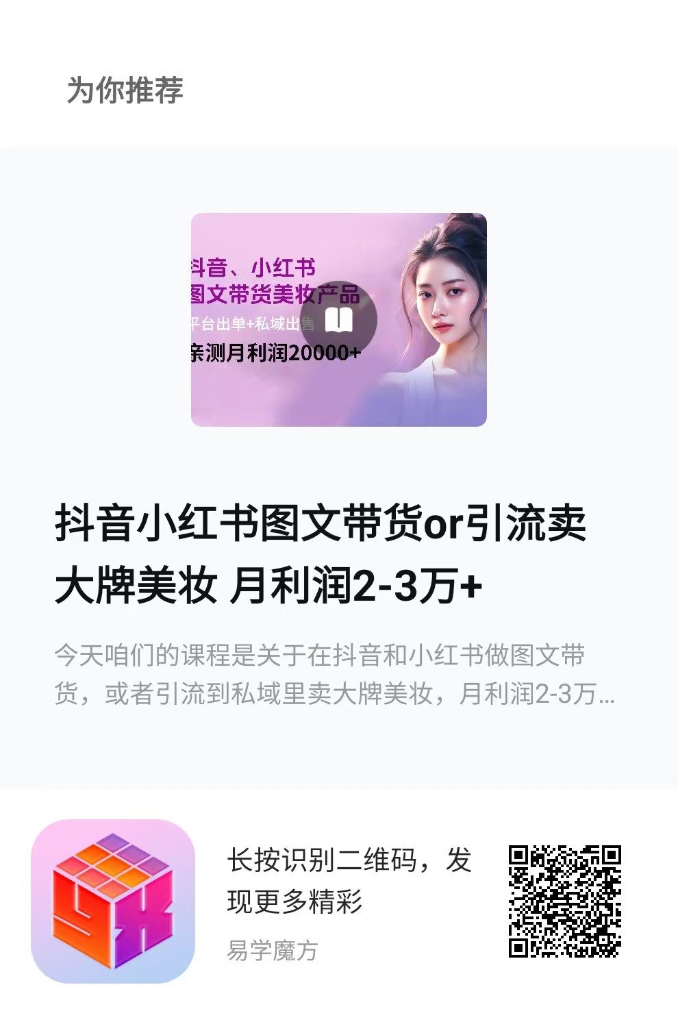 学习更多优质副业课程,请到手机应用商店下载易学魔方app,注册时填写激活码:5995。作者微信:eps5995,添加好友可以领取3套亲测靠谱的项目课程!